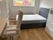 Shared bathroom (loo, basin, bath with electric shower over it), separate downstairs loo. Newly fitted kitchen with fridge, induction hob, oven and washing machine. Separate dining room and spacious lounge. Garden.