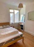 The room does have a bed. Large, bright room available in a comfortable 3-bedroom house. The home is clean, well-kept and has a relaxed, easygoing atmosphere.