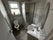 Neutral décor and carpeted flooring create a clean, modern feel, while the window provides natural light and includes blinds/curtains for privacy.