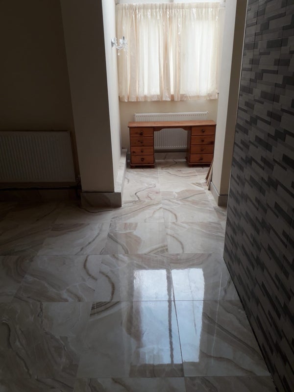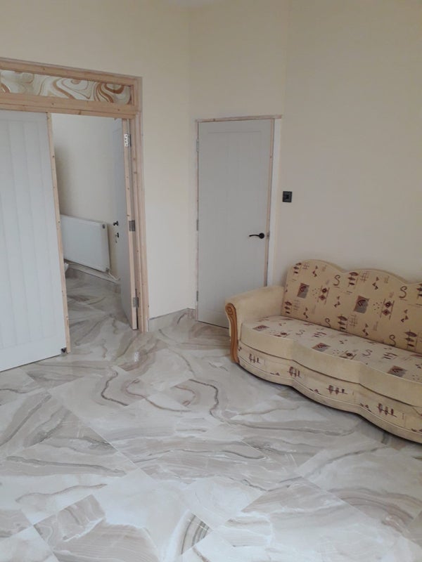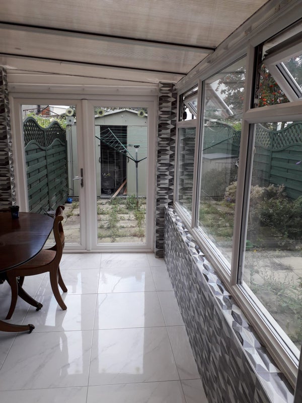 Fully tiled floors, washing machine new kitchen, large bathroom with walk in shower, conservatory and garden,