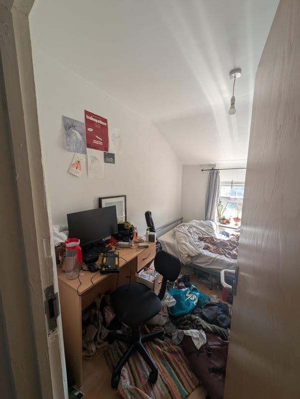 Vacancy in a four bed house! The bedroom is on the first floor with a view of our beautiful garden! The garden is huge with an old anderson bomb shelter at the end? Come see the sights! We have a shared kitchen and living room, two shared toilets, and a shower.