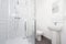 A stylish, modern shower room with a large shower and shower head, wash basin and toilet. Your shower room also comes with a heated, chrome towel rail.