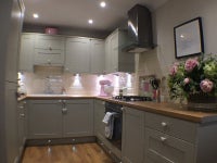 walk to the station, the park and village in a matter of minutes, professional share (you and the owner), with a deluxe room in a 3 bed house with a king-sized bed and an en-suite containing a power shower. Fully fitted wardrobes, loads of hanging space, and storage. Loft space for cases, boxes if needed. Space for a desk in room if you want to bring your own.
