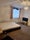-1 kitchenette with a small oven with 2 hobs, induction hob, kettel, microwave & fridge freezer, tsble & 2 bar stools, TV;