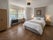 The room if furnished, comes with a double bed, one single and one double wardrobe, a sofa, a TV stand, a desk and a chest of drawers.