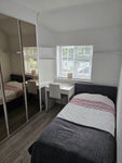 The room is furnished and comes with a bed, large wardrobe with lots of space, desk and chair etc.