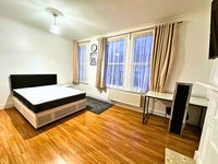 A comfortable, well-laid-out room perfect for a single professional. With Brand new bedframe and double mattress | Desk and chair | Wardrobe and drawers.