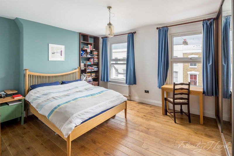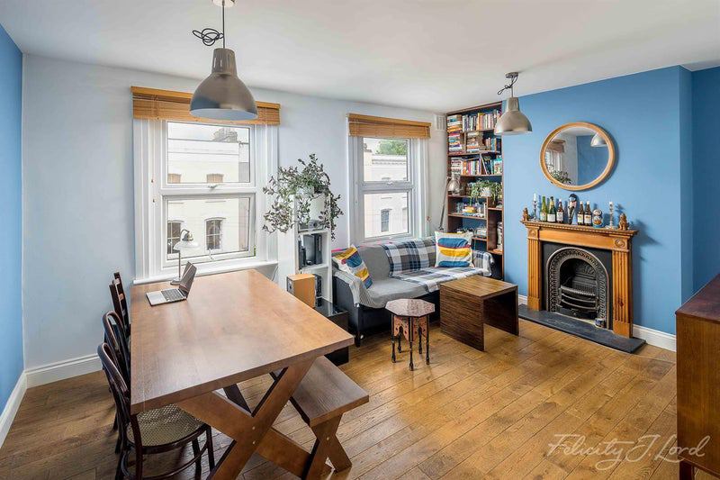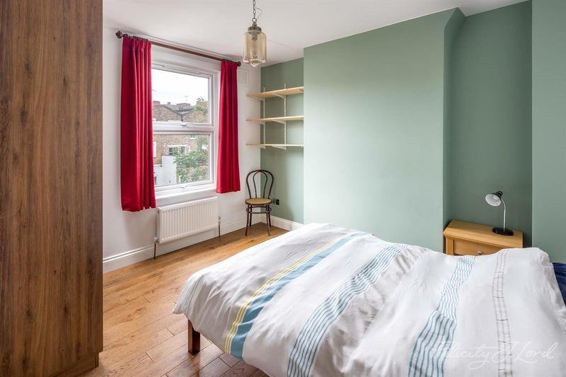 The flat sits on the top floor of a handsome Victorian terrace and has just been freshly redecorated throughout. The new tenants will be moving into a flat that feels brand new. Inside, the interiors are modern and high quality: marble worktops, a 5-hob range-cooker, top-of-the-range kitchen appliances, a rainfall shower, and built-in wardrobes throughout. Wooden floors and high ceilings run through the whole flat, giving it a real sense of space and light.