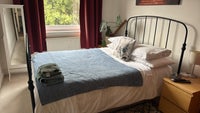 Furnished double room in quiet neighbourhood with front and back garden. I am a professional who works from home maybe one day a week. Separate living room.