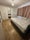 The room is bright, it has wooden flooring ; has two big double wardrobes, chest of drawers, a double bed and mattress. There is plenty of space for a desk.