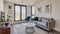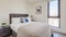 The apartment is fully furnished with high-quality furniture and features an open-plan living and dining area, a contemporary fitted kitchen with integrated appliances, a spacious bedroom with built-in wardrobe storage, and a sleek modern bathroom. Large windows provide excellent natural light and elevated views across the surrounding area.