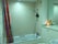 The flat has a spacious bathroom, and simple kitchen.