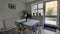 There is a separate, well-equipped kitchen and dining area opening onto an expansive garden, complete with outdoor table and chairs, barbecue, and fire pit.