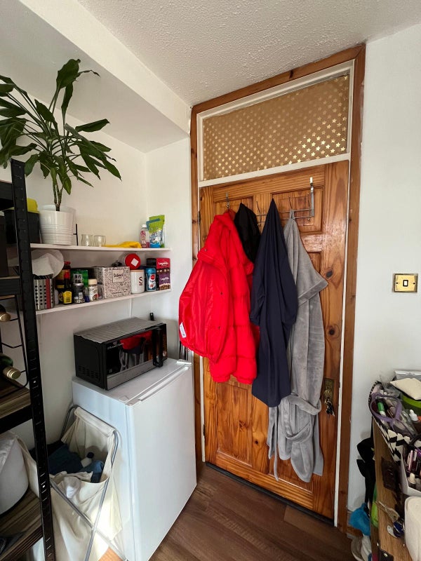 THERE IS A FULLY FITTED KITCHEN WITH MICROWAVE, HOB & OVEN FRIDGE , A SEPARATE FREEZER, & WASHING MACHINE. ( FRIDGE SHARED WITH ONE OTHER PERSON ONLY )