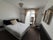 The room is fully furnished with a double bed, a wardrobe and a rail.