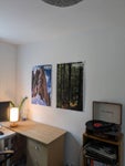 The room is quite spacious and fully furnished. It overlooks our private backyard. There is a desk, wardrobe, double bed and shelf.