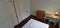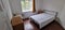 Large double bedroom, with a double bed, built in closet, chest of drawers and a bedside table.