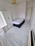 This is a double bedroom in a Lower Clapton Houseshare. The room has 2 large original sash windows and white painted floorboards. The room is warm and cosy through the winter as the heat rises up to it on the top floor