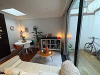 Our flat is located in Dalston on the main street, Kingsland Road, in east London. It's on the ground floor, behind a vintage second hand clothes shop, so we don't get any noise from the main road. It consists of four main rooms: The entrance, which leads into the living room where the kitchen is also located, a bedroom and a bathroom. We also have a large terrace that is accessible from both the living room and the bedroom.
