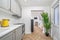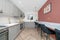 This unit has an integrated fridge, washing machine, and storage cupboards. It also has a private toilet, shower, and a smart TV. Within the building, there is a large shared kitchen.
