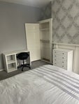 A spacious, light-filled double room available in a professional house share. The room comes fully furnished with a comfortable double bed, large wardrobe, chest of drawers, and a dedicated workspace/desk