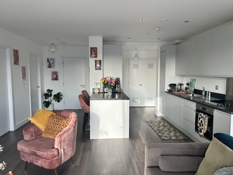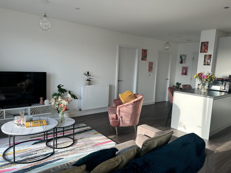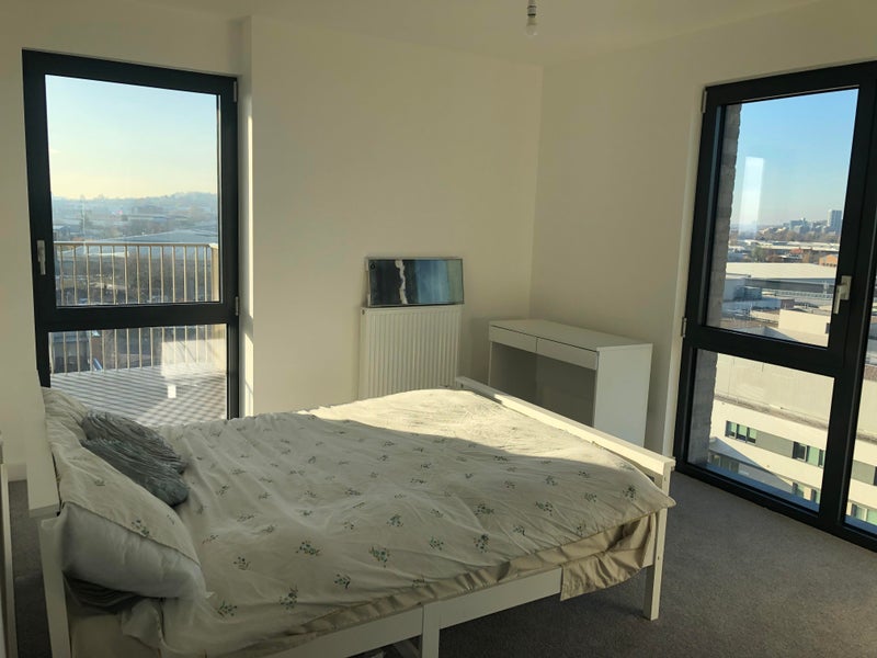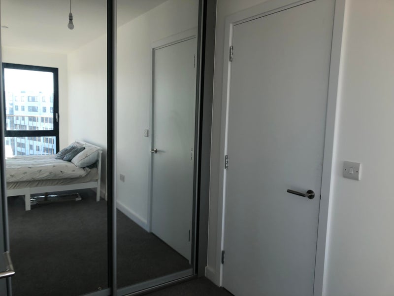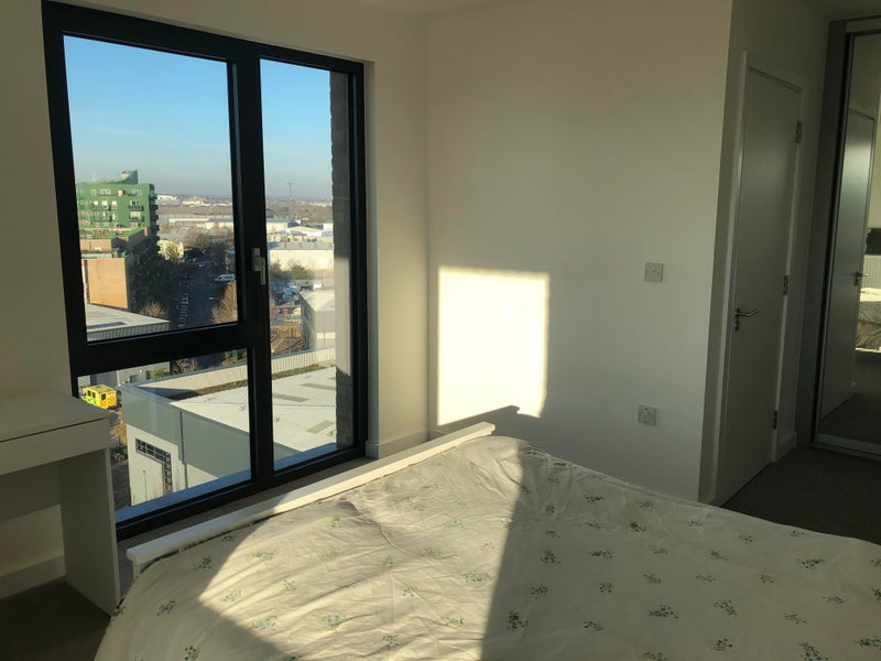 Lovely newly built flat to share with one in 2-bedroom flat within NW10. This is a primary en-suite double bedroom. The en-suite has a double shower, heated towel rack, and a large fitted mirror wardrobe. The modern flat is furnished with a large balcony and rooftop communal gardens.