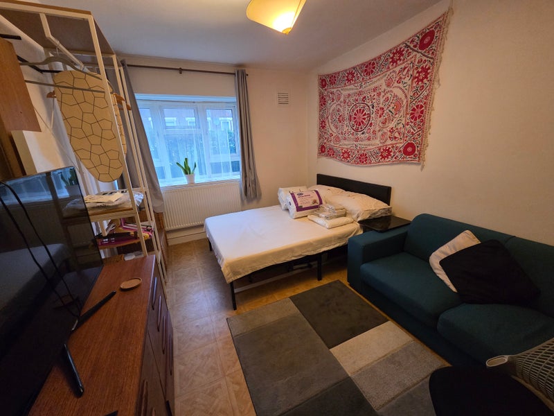 A fully furnished spacious double room in a cosy, cute flat is available behind Stoke Newington High Road.