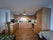 The flat has a spacious open-plan kitchen and living room with a TV and sofas.