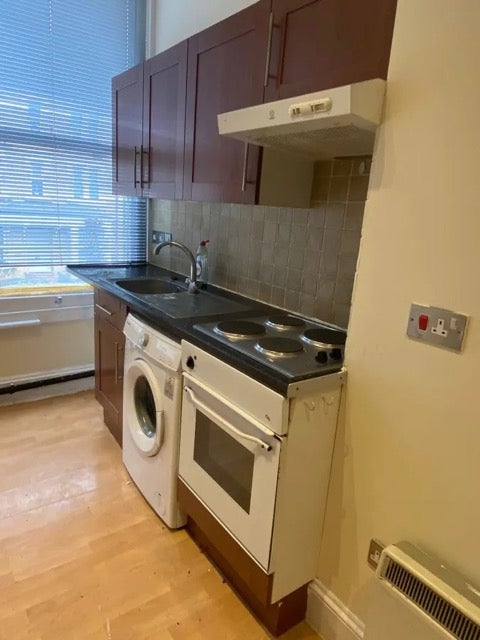 Lovely modern studio flat on the first floor. Wooden flooring and bright neutral decor throughout. Open plan kitchen/lounge with all mod cons including washing machine. Fully furnished. One minute to bus links, shops and local amenities. Five minutes to Kilburn Tube.