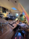 Rest of flat: light and airy with skylight windows, large double sink bathroom, balcony with bifold doors and stunning views, cosy arty decoration, inviting kitchen living room space, fully stocked kitchen with every spice you could ever dream of, record player and good quality bluetooth speaker to share, access to roof space, laundry room, two really good vacuum cleaners, iron and ironing board and steamers.