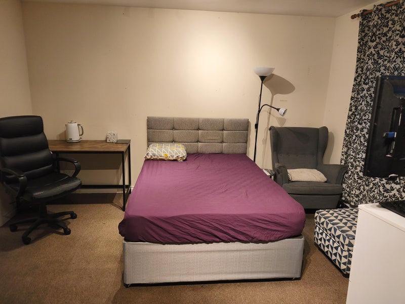 Available from 25th March for short term renting. A week is £500, max stay till 12th of April.. For couples is £650 per week. Please note, just light cooking allowed in the kitchen. You will be provided with bedding, towels and kettle in the room. Short letting while I am away. In a case that you are booking with child, we can provide guest bed with memory foam mattress.