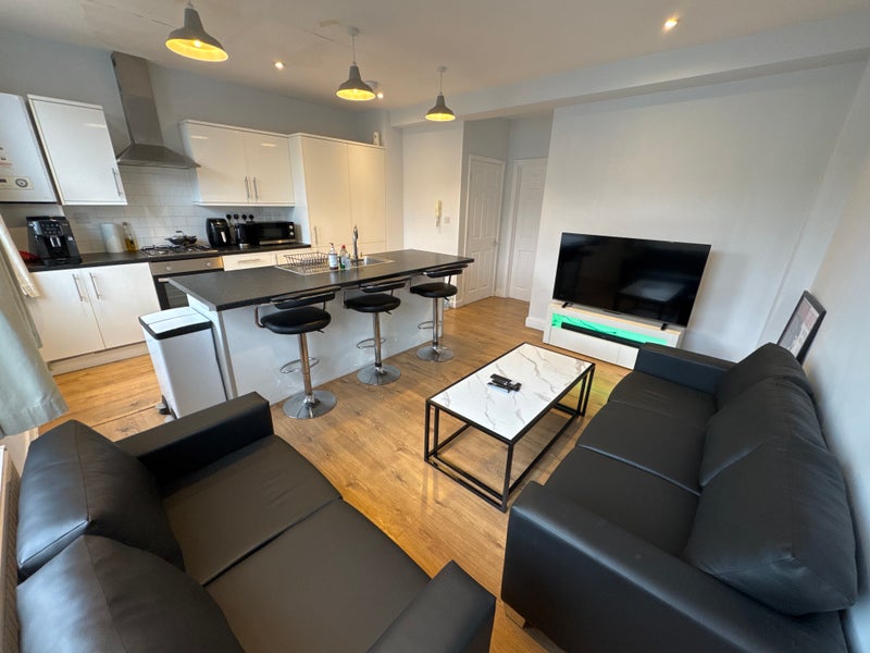 The property provides a shared living room and fully equipped kitchen, with washer/dryer and dishwasher, offering both comfortable communal living experience.