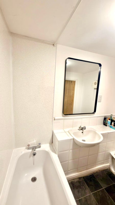 The flat has one toilet and one bath, please note one of the rooms in the flat is an ensuite room so it will only be three tenants sharing the toilet and shower.
