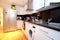 The kitchen is really functional, with a communal space with all the stuff you need to cook, plates, pans, microwave, oven.. and for sure the flat has a washing machine.