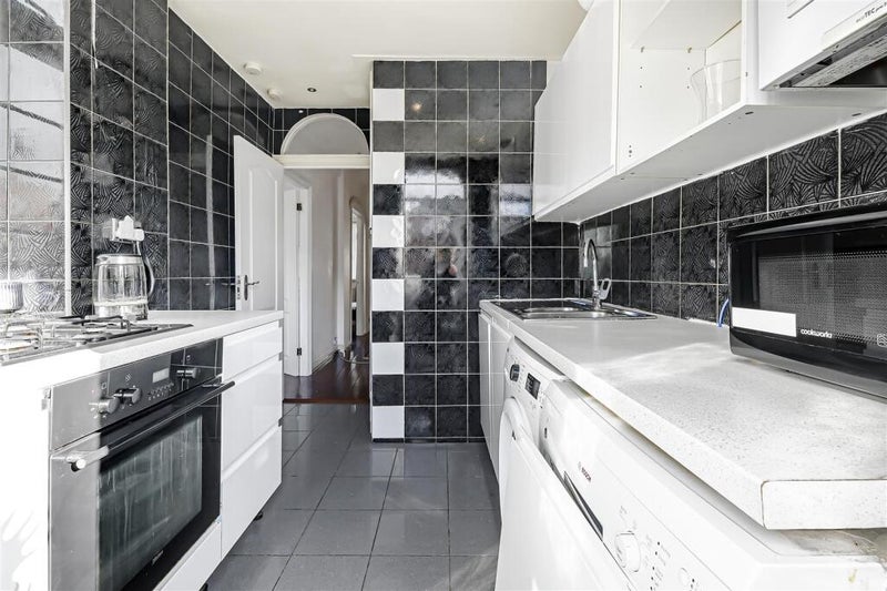 The kitchen opens straight onto a balcony and communal garden, perfect for relaxing, having a coffee, or enjoying some fresh air.