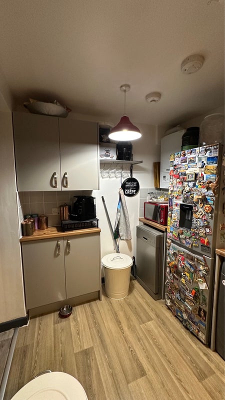 The room has a double bed with a brand-new mattress, a large wardrobe, chest of drawers, bedside table, and a small fridge. There’s also plenty of space if you’d like to add anything else. The room can be locked with a key for privacy.