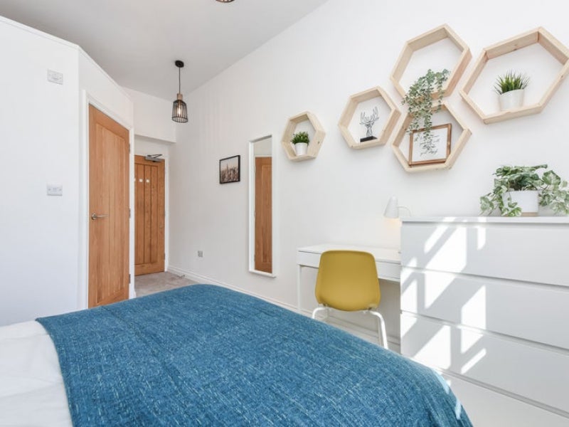 Your BEDROOM has double bed with a firm Mattress, Fitted Wardrobe, Chest of Drawers, Bedside Table, Desk, Chair, Blackout Blinds or curtains, your own personal clothes hanger and laundry bag.