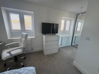 Fully furnished En-suit double rooms with king size bed, storage under the bed.