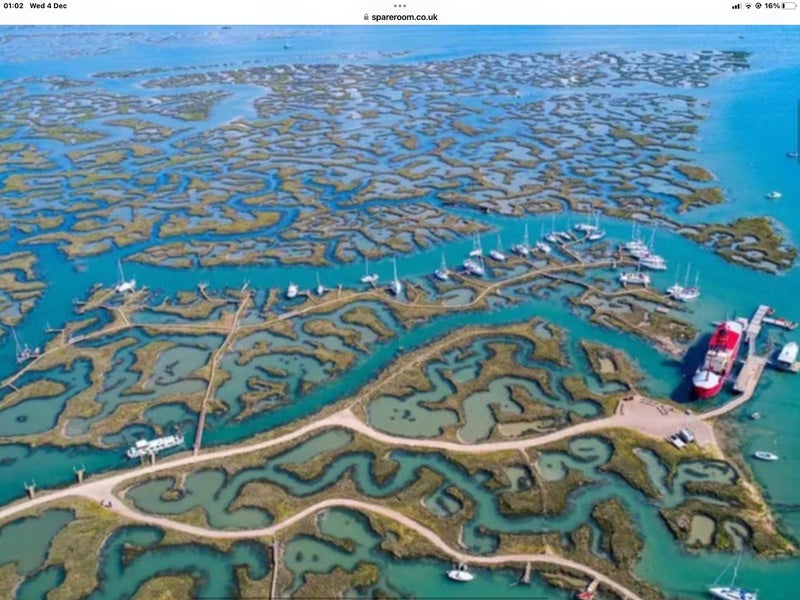 Turn right on reaching the sea wall and you have a scenic walk , run or cycle along the estuary sea wall towards the hidden gem of Goldhanger beach , Heybridge basin and onward towards maldon .