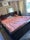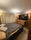 This advert is for a large bedroom with emperor size bed and 75” TV. There is no table because the bed takes up most of the room. Nextflix and Prime are included. There is a lot of storage.