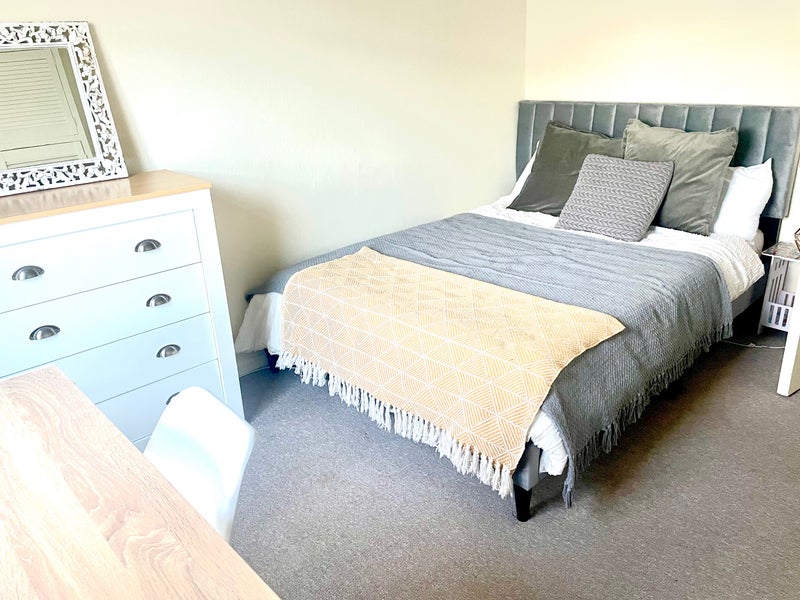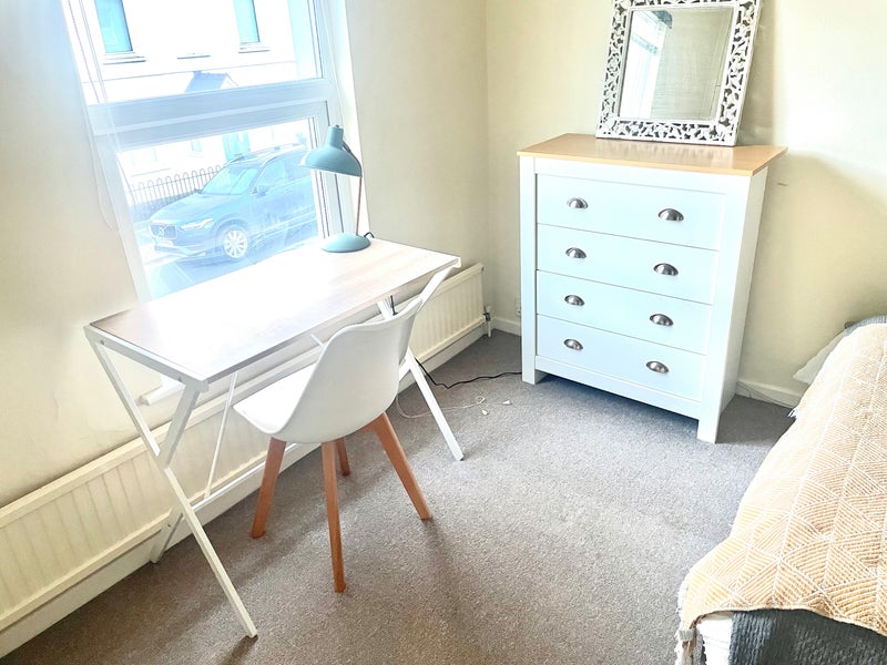 New bed and new memory foam mattress. New chest of drawers. Built in wardrobe.