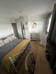 Desk with chair, ks bed, built in large cupboard. Fabulous views. Shared kitchen, toilet and bathroom. I have two small dogs , so animal friendly a must. On road parking. One month in advance plus small bond