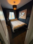 Small but very comfortable double bedroom available in a quiet, clean house in Hooton. The bedroom has a clothes rail, under bed storage, a bedside storage unit and smart television on the wall not pictured.