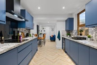 Open-plan communal kitchen, dining and living area, plus utility room.