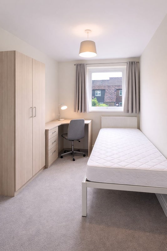 The room available is a large single on the first floor. Furnished with single bed, great quality mattress, wardrobe, desk and chair.