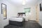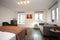 Double bed, wardrobe, bedside table, sofa, wooden floors