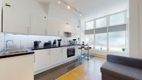 The flat is offered to the market fully furnished and is comprised of a good sized open plan living room/kitchen with integrated appliances, breakfast bar and L shape sofa.