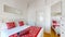 The main bedroom has a double bed, 2 wardrobes, chest of drawers and opens onto the private patio