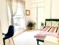 Room has large bay window with nice view, making it light and airy. It also has build in wardrobe and comes furnished and there is storage room for additional luggage if needed.
