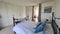 The room is a lovely loft conversion featuring a double bed, built-in cupboards, and a Juliet balcony overlooking the garden. The spacious ensuite bathroom includes both a walk-in shower and a large bath. Bed linen and towels can be provided if needed.